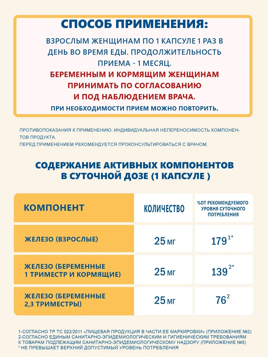 Железа бисглицинат — содержание железа в 1 капсуле (указать конкретную дозировку при необходимости).