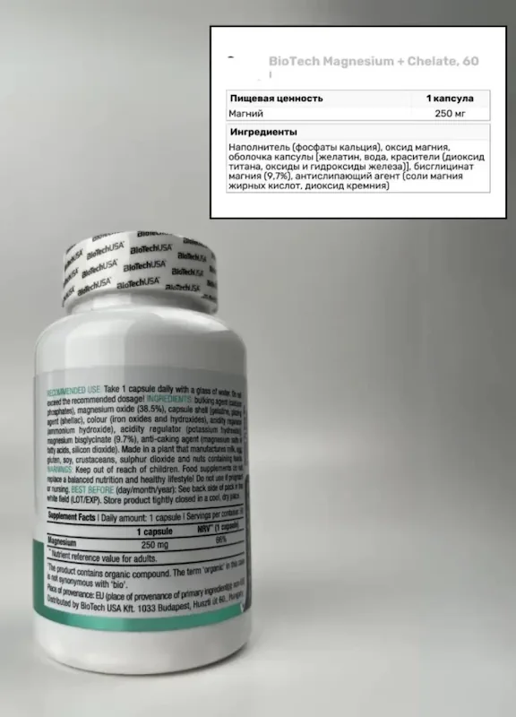 Magnesium + Chelate от BiotechUSA — это высокоусвояемая форма магния в хелатной форме, разработанная для поддержки нервной системы, мышц и общего самочувствия. Хелат магния отличается мягким воздействием на ЖКТ и высокой биодоступностью, что делает добавку подходящей для ежедневного применения.