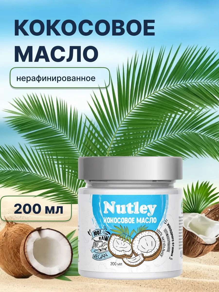 Кокосовое масло холодного отжима Nytley, 200 мл — это натуральный продукт, полученный бережным методом прессования свежей мякоти кокоса. Масло обладает чистым ароматом, мягкой текстурой и высоким содержанием ценных нутриентов. Подходит как для ухода за кожей и волосами, так и для кулинарного использования.